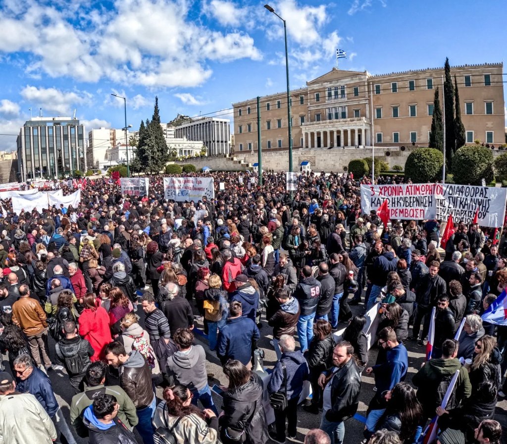 Ολοκληρώθηκε το συλλαλητήριο στο Σύνταγμα για τα τρία χρόνια από το έγκλημα στα Τέμπη που στοίχισε τη ζωή σε 57 ανθρώπους.
